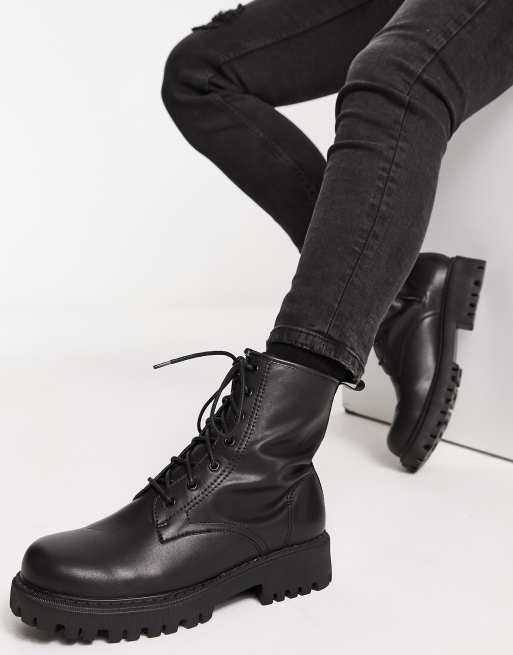 London Rebel X chunky mid calf lace up boots in black Very well made.