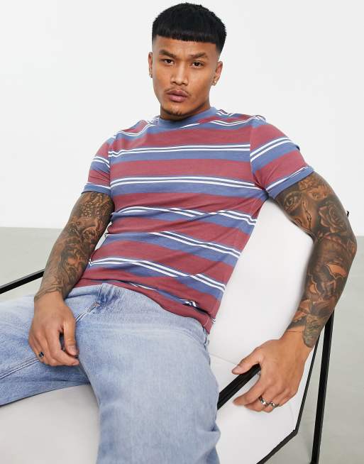 ASOS DESIGN muscle fit stripe t shirt in red blue Very well made.
