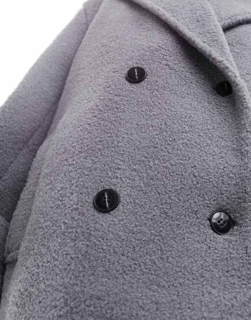 ASOS DESIGN textured cosy pea coat in pale grey Very well made.