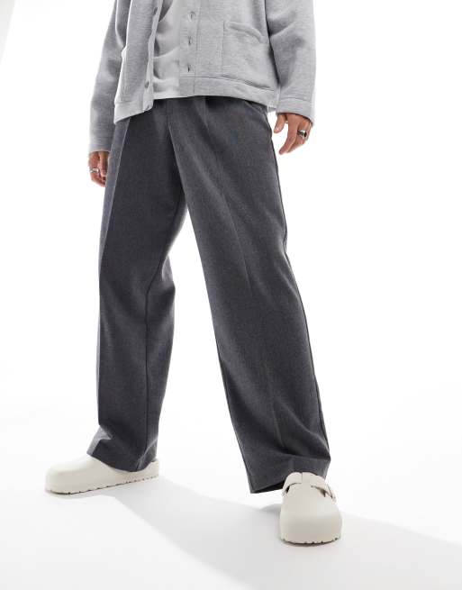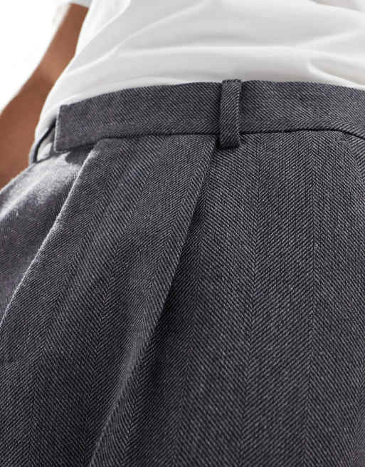 ASOS DESIGN smart wide leg pleated wool mix trousers in charcoal herringbone Very well made.