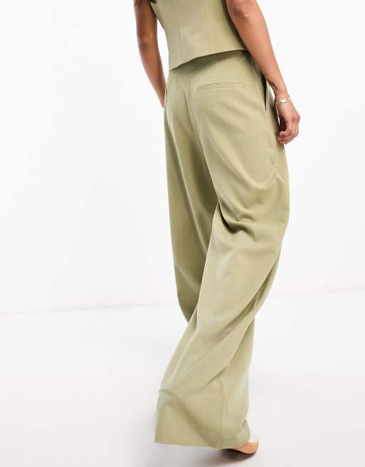 ASOS DESIGN wide leg pleated pants in khaki part of a set ASOS Very well made.