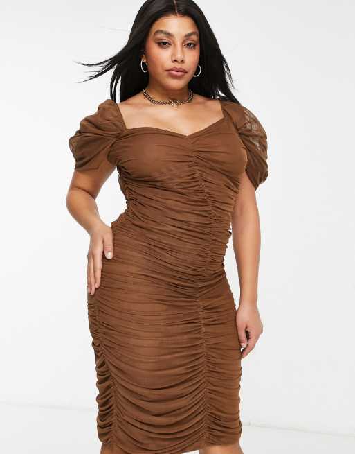 ASOS DESIGN Curve sweetheart neck mesh ruched midi dress in chocolate Very well made.