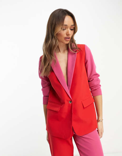 Vila tailored colour block blazer and tapered pants set in red and pink ASOS Very well made.