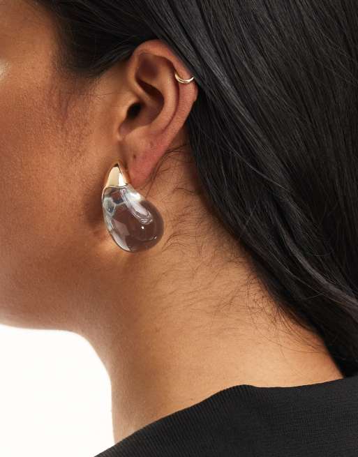 ASOS DESIGN Limited Edition oversized stud earrings with molten look teardrop in clear resin ASOS Very well made.