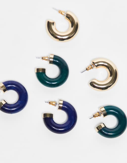 ASOS DESIGN pack of 3 hoop earrings with resin design in multi ASOS Very well made.