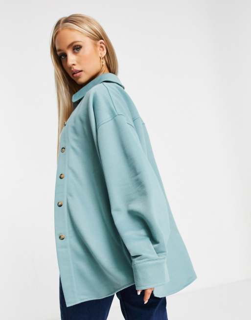 ASOS DESIGN jersey suit shirt jacket in washed blue Very well made.