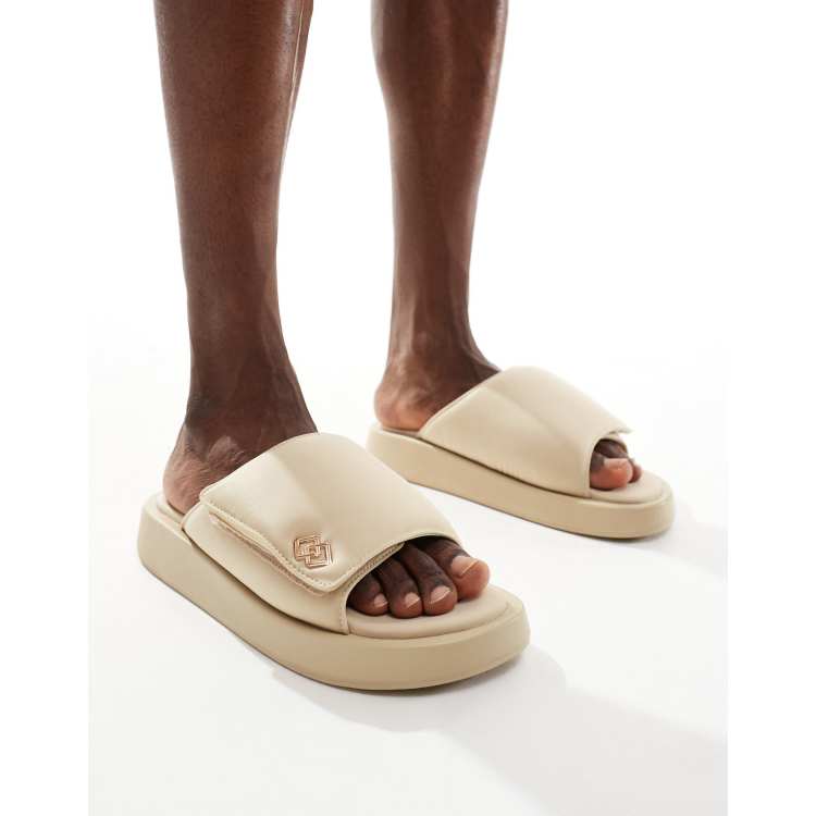 ASOS DESIGN slider sandals in stone with chunky sole ASOS Very well made.