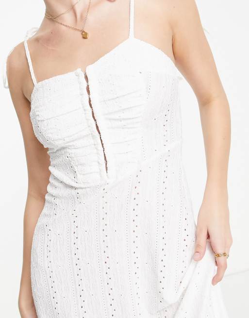 ASOS DESIGN Tall broderie strappy midi tea dress with hook and eye detail in white ASOS Very well made.