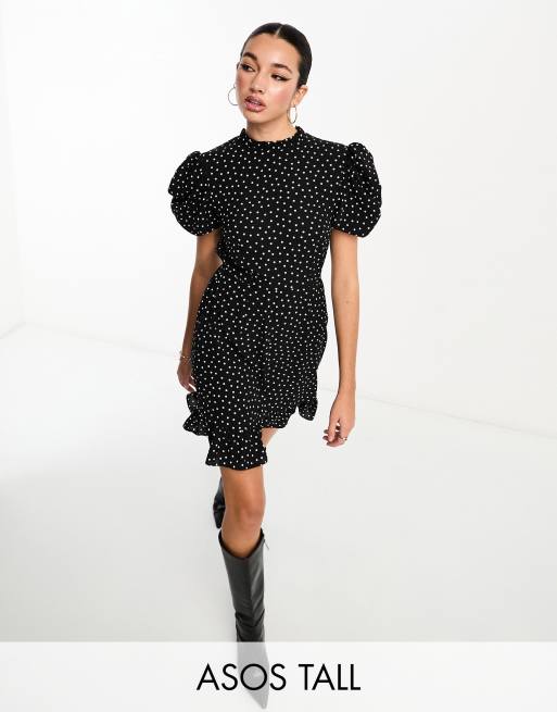 ASOS DESIGN Tall pie crust neck puff sleeve mini tea dress in mono spot Very well made.
