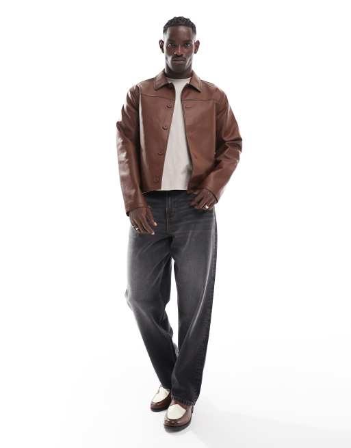 ASOS DESIGN faux leather oversized coach jacket with pockets in brown Very well made.