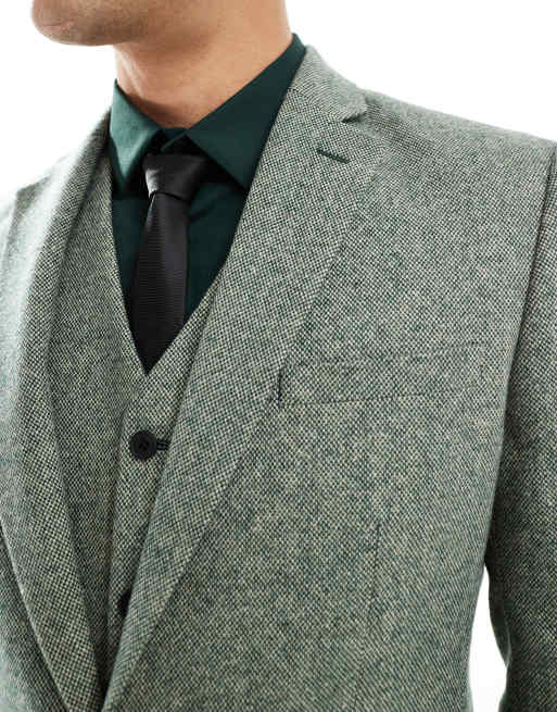 ASOS DESIGN Slim Suit Jacket in 100 Wool Harris Tweed In Taupe Herringbone Very well made.