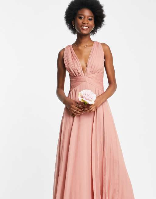 ASOS DESIGN Vestito lungo da damigella drappeggiato con corpino con ruches avvolgente in vita rosa scuro ASOS Very well made.