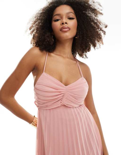 ASOS DESIGN Vestito midi a fascia in raso color ruggine a fiori con dettaglio drappeggiato e stile corsetto Very well made.