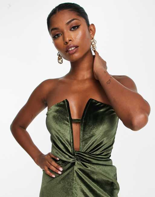 ASOS DESIGN Vestito lungo a fascia verde scuro premium con fondo peplo cintura e spacco sulla coscia Very well made.