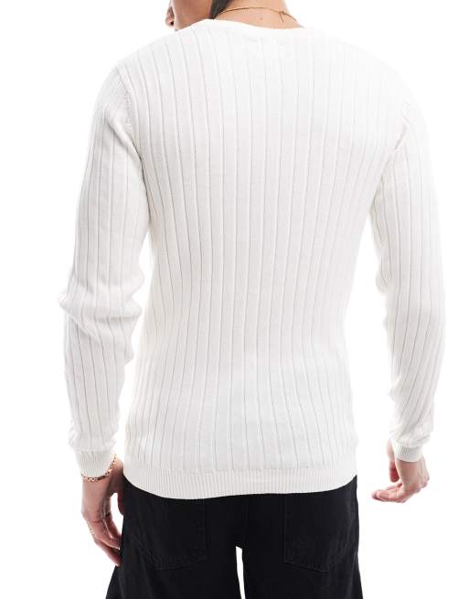 ASOS DESIGN essential muscle fit knitted rib sweater in white Very well made.