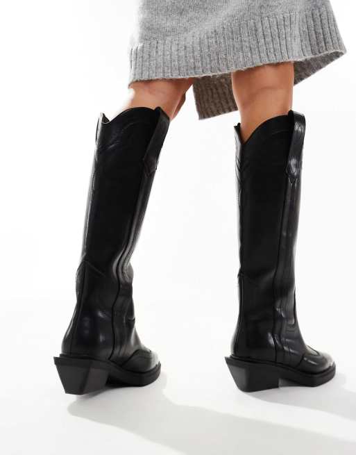 ASOS DESIGN Wide Fit Celeste flat western knee boots in black ASOS Very well made.