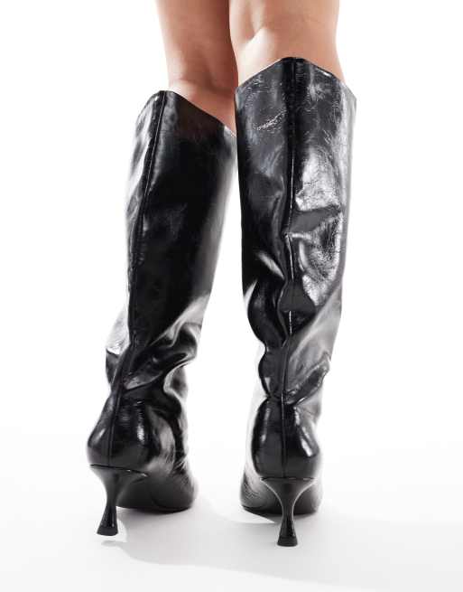 ASOS DESIGN Wide Fit Crimson pull on kitten heeled knee boots in black ASOS Very well made.