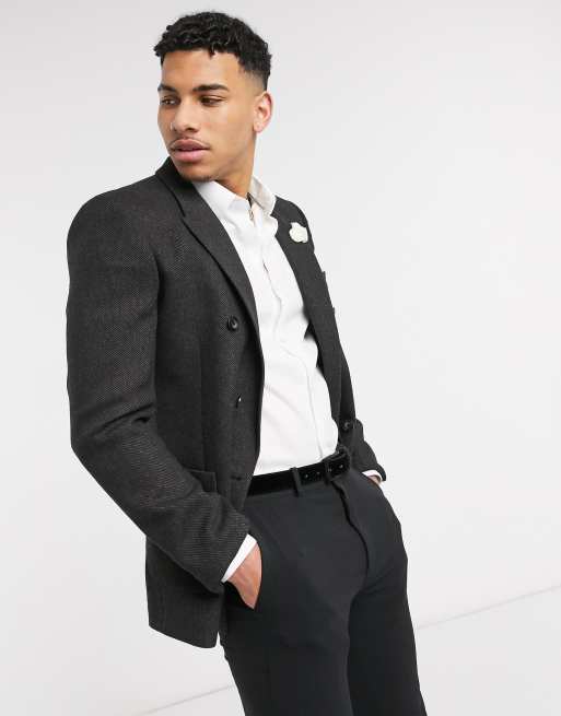 ASOS DESIGN skinny double breasted blazer in charcoal wool mix twill Very well made.