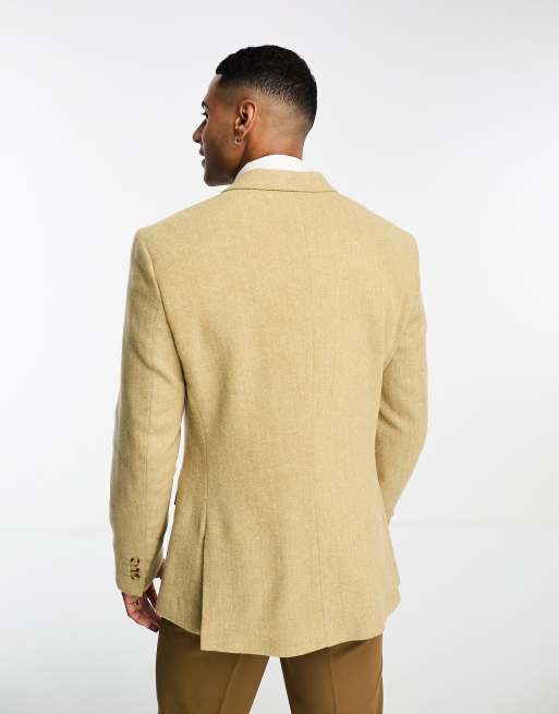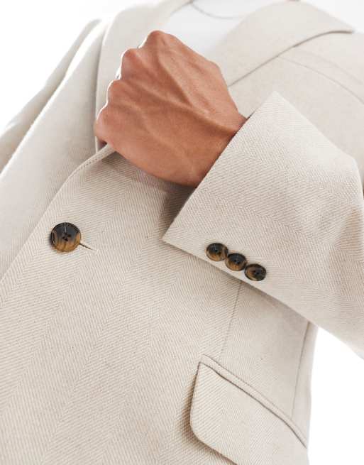 ASOS DESIGN skinny wool mix blazer in stone herringbone Very well made.