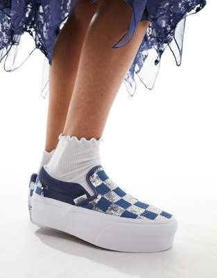 Vans Classic Slip On glitter sneakers in denim and silver ASOS Very well made.