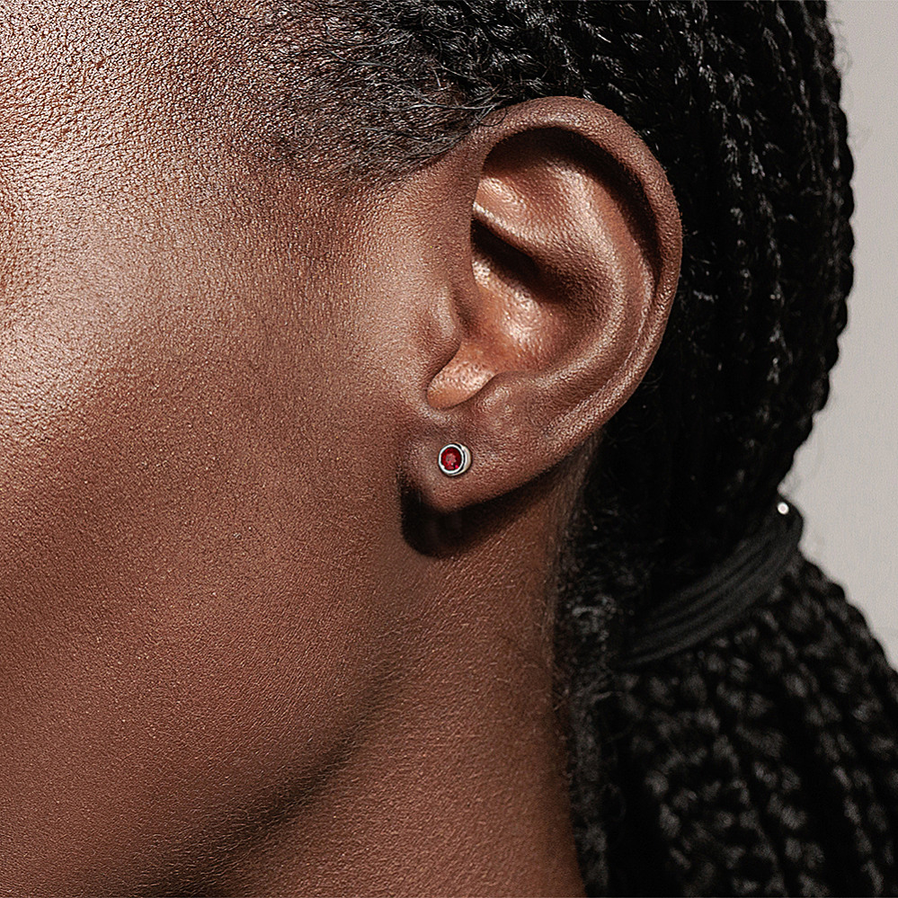 Bezel Set Ruby Studs Sterling Silver Shane Co Very well made.