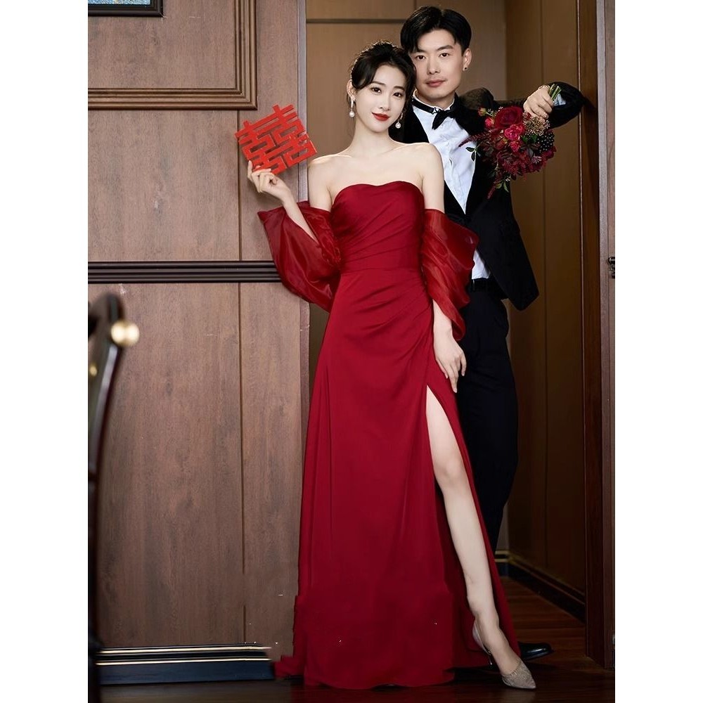 15331 Real Photos Simple Off Shoulder Satin A line Engagement Wedding Gown Birthday Party Dress Women Very well made.