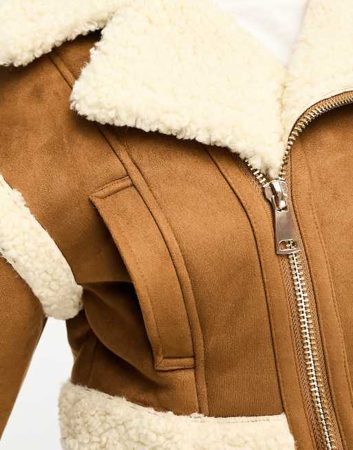 Miss Selfridge crop suedette borg aviator in tan ASOS Very well made.