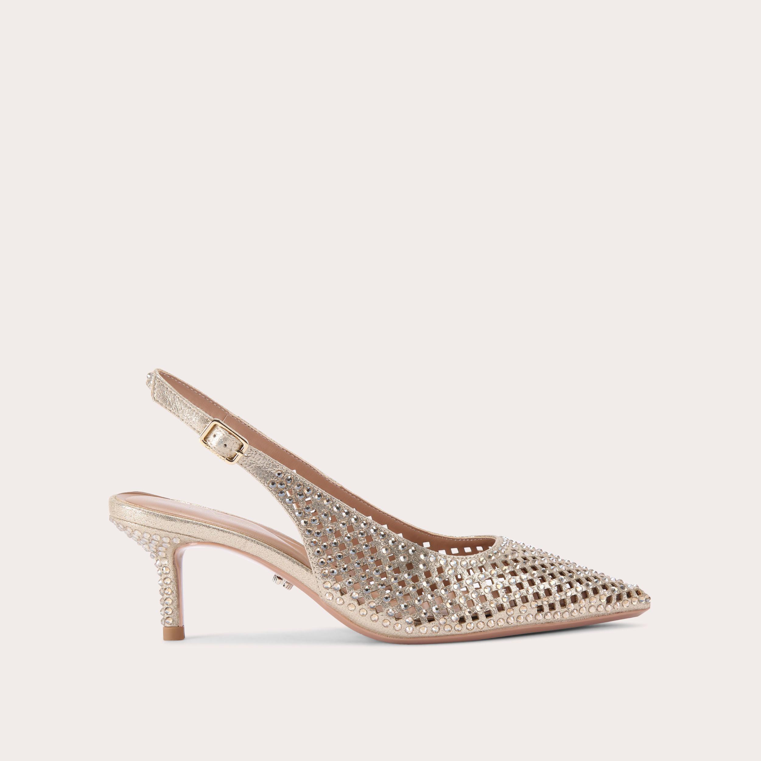 Calista Slingback Heel in Gold Clear Get great deals at JustFab Very well made.
