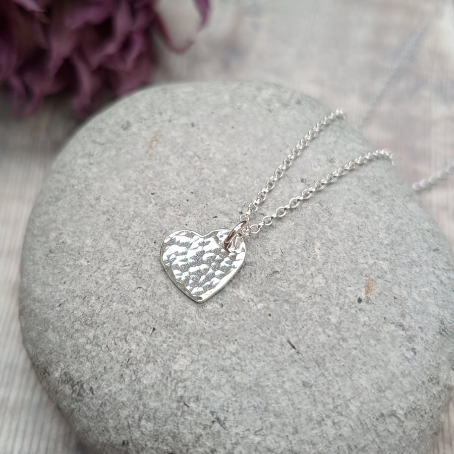 Sterling Silver Small Hammered Heart Necklace Very well made.