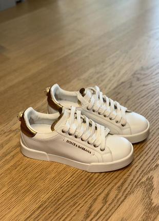 Dolce Gabbana White Calf Leather Logo Sneakers Very well made.
