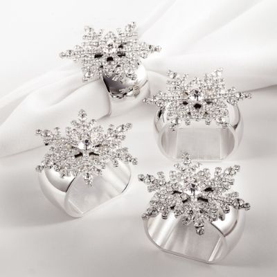 Set of 4 Crystal Snowflake Napkin Rings Very well made.