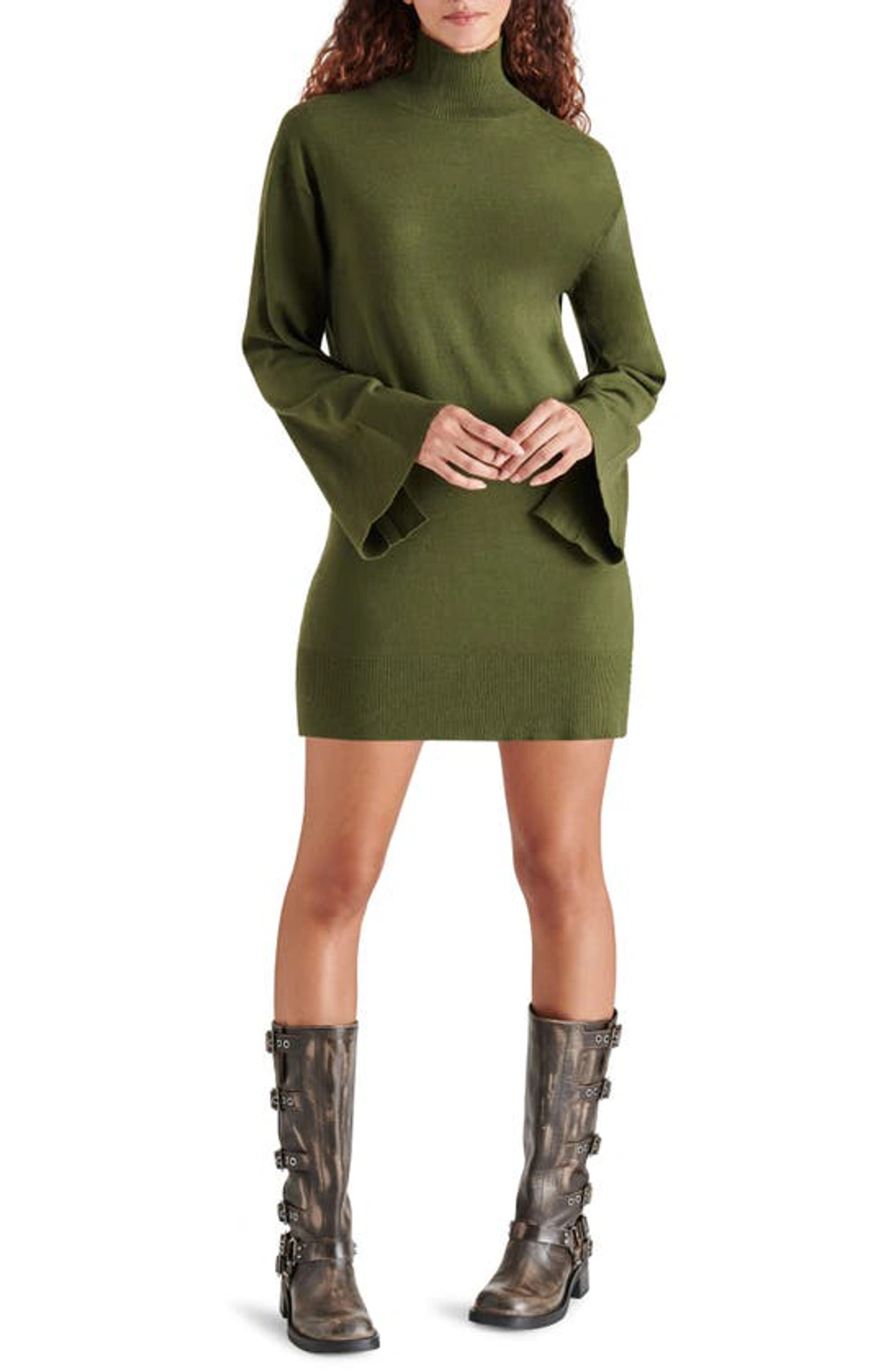 Steve Madden Gretta Turtleneck Long Sleeve Sweater Minidress In Dark Olive ModeSens Very well made.