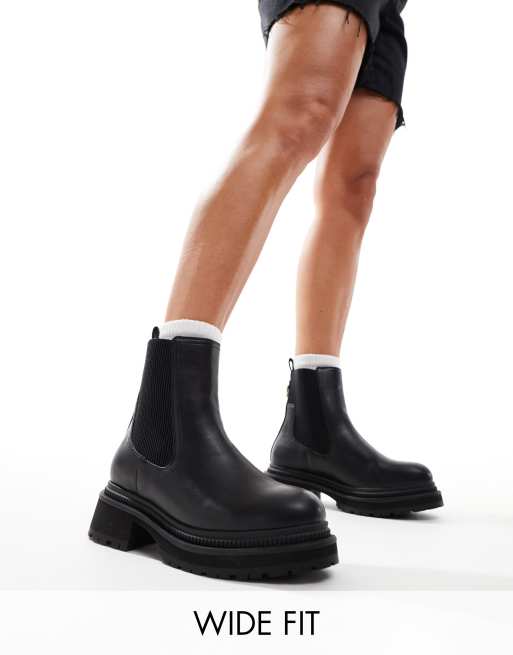 London Rebel Becky Stivaletti Chelsea medi neri a pianta larga con suola spessa Very well made.