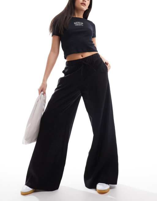 Stradivarius Pantaloni in tessuto effetto lino a fondo super ampio neri ASOS Very well made.