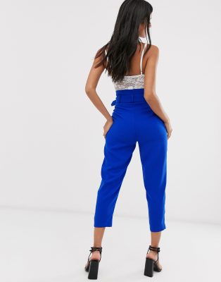 Stradivarius paperbag trousers with belt in blue Very well made.