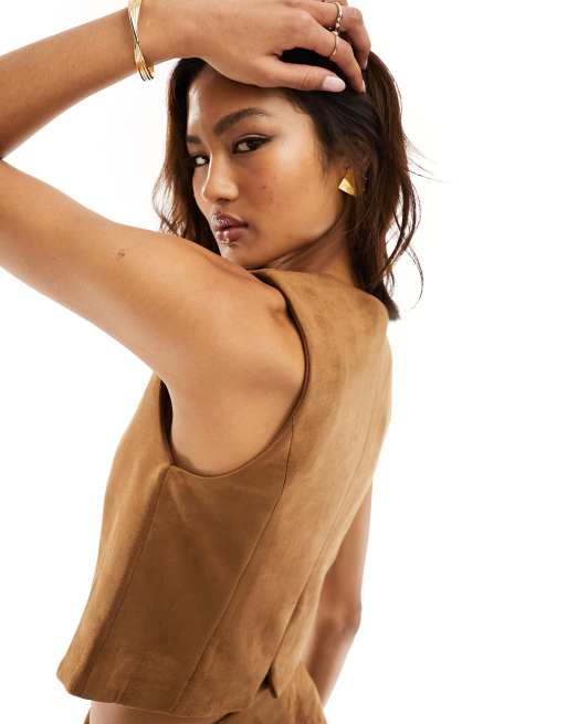 Mango suede co ord waistcoat in light brown ASOS Very well made.