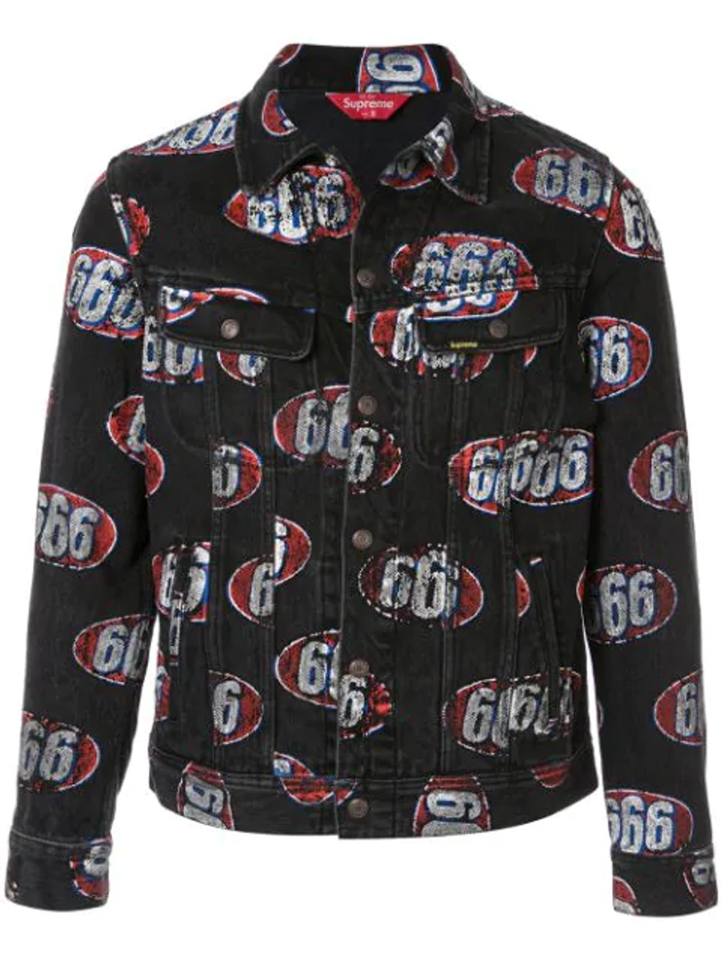 ArchiveThreads FOR SALE SS17 Supreme 666 Washed Full Print Denim Trucker Jacket For Supreme s Spring 2017 collection the New York streetwear label. Instagram Very well made.
