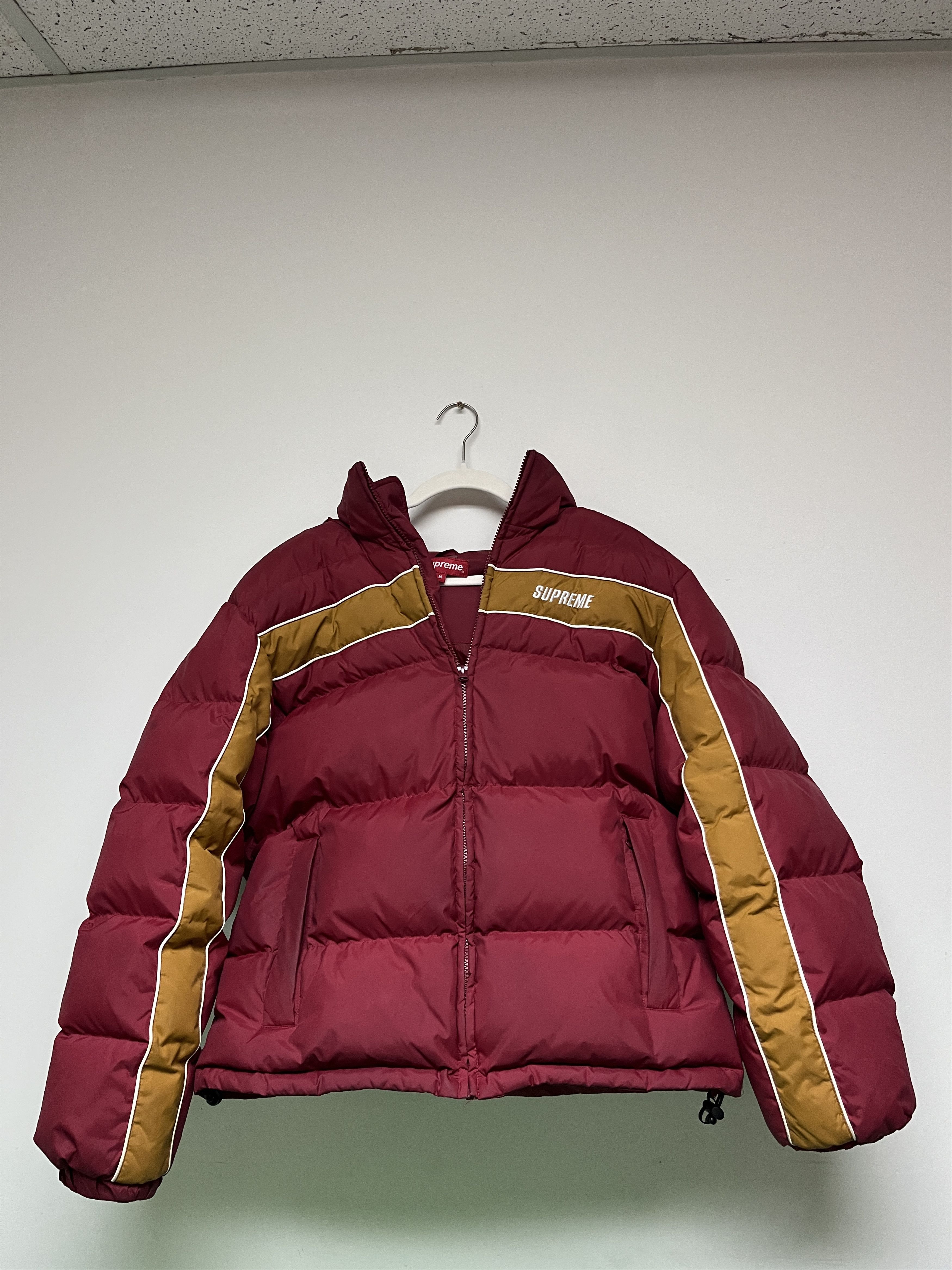 Supreme Burgundy Red Supreme Stripe Panel Down Jacket Grailed Very well made.