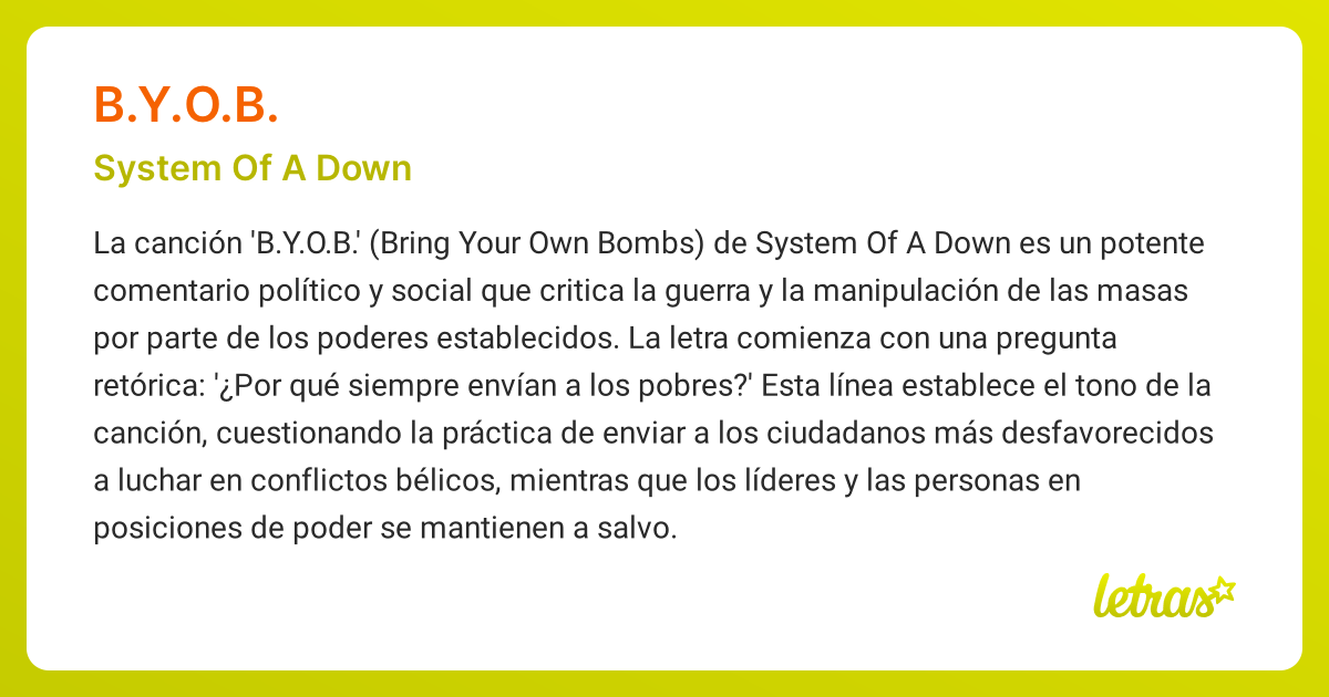 Soad hotsell byob lyrics Very well made.