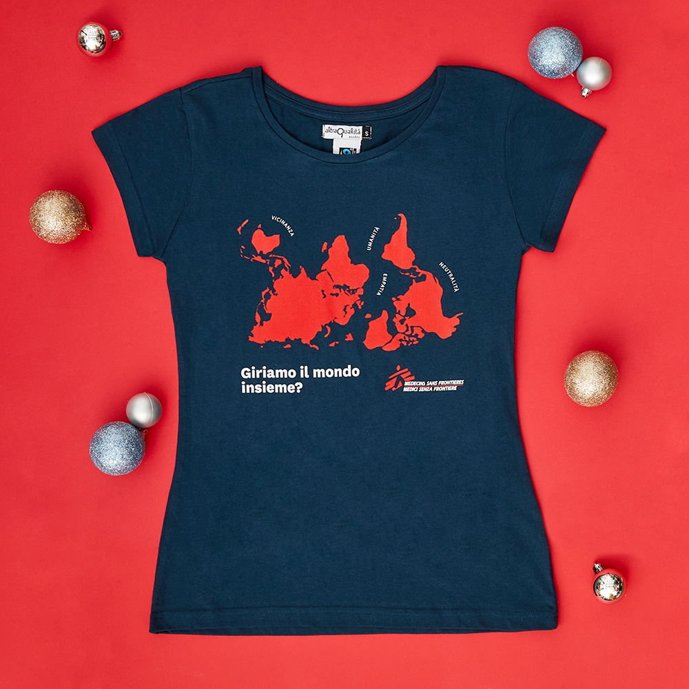 T shirt donna blu baltico Giriamo il mondo insieme Very well made.