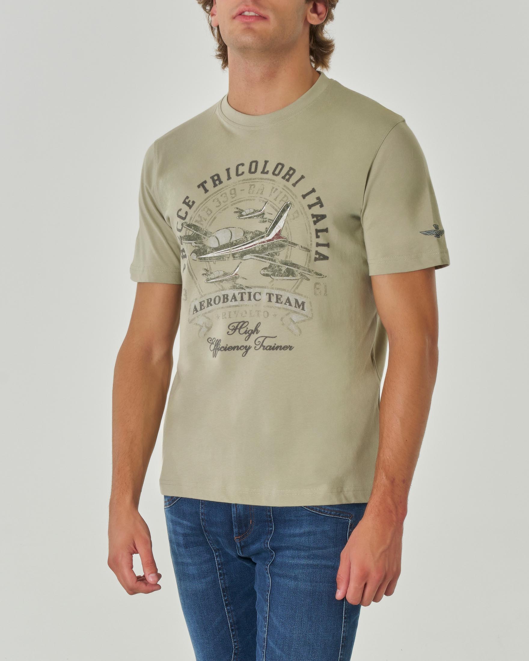 T shirt verde salvia mezza manica con stampa Frecce Tricolori Very well made.