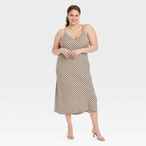 Women s Linen Slip Dress A New Day Tan black Striped 4x Target Very well made.