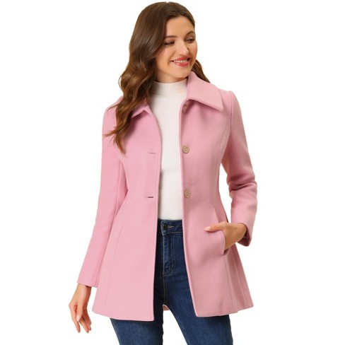 Inspire Chic Women s Turn Down Collar A line Single breasted Winter Overcoat With Pockets Pink X small Target Very well made.