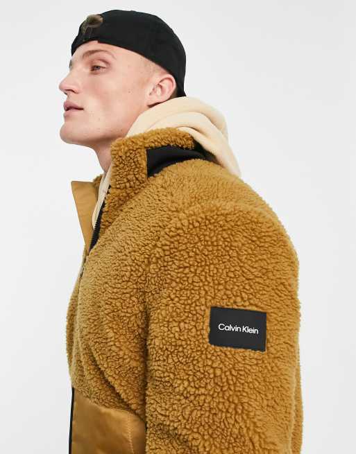 Calvin Klein teddy borg polyster blend zip through jacket in tan ASOS Very well made.