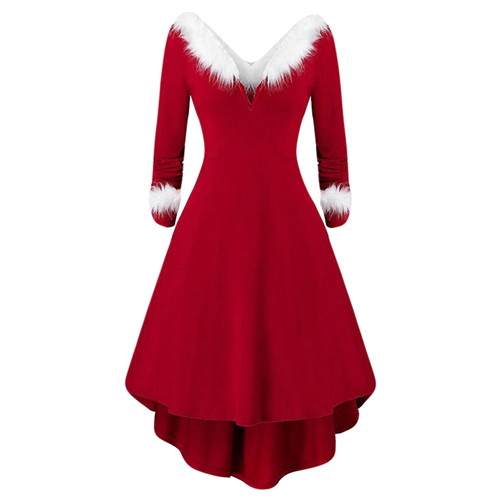 JE High Low Hem Christmas Dress Patchwork Waist Tight Large Hem Christmas Dress White Plush Cosplay Costume Shopee Malaysia Very well made.