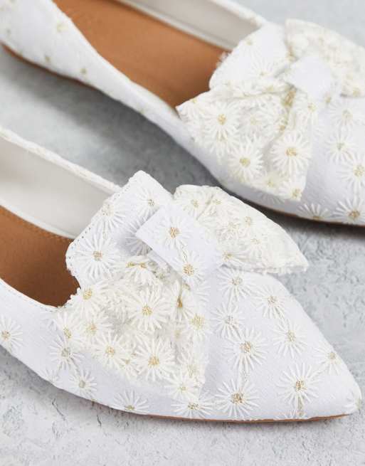 ASOS DESIGN Lake Ballerine a punta con fiocco bianche con margherite Very well made.