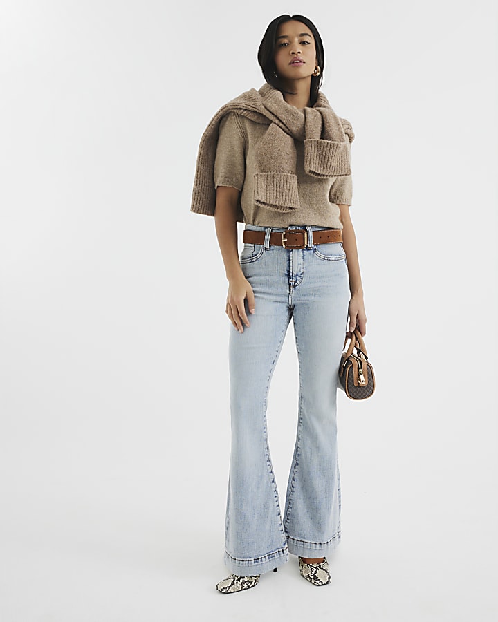Petite blue high waisted flared jeans River Island Very well made.