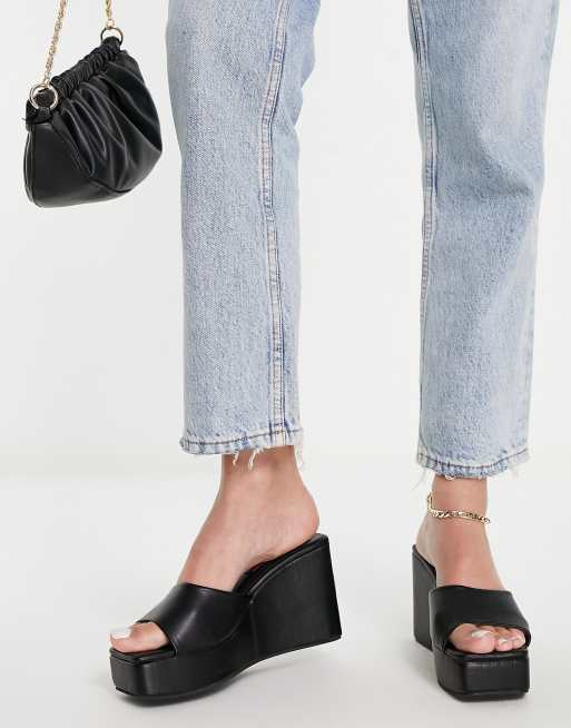 London Rebel 90s chunky square toe wedges in black Very well made.
