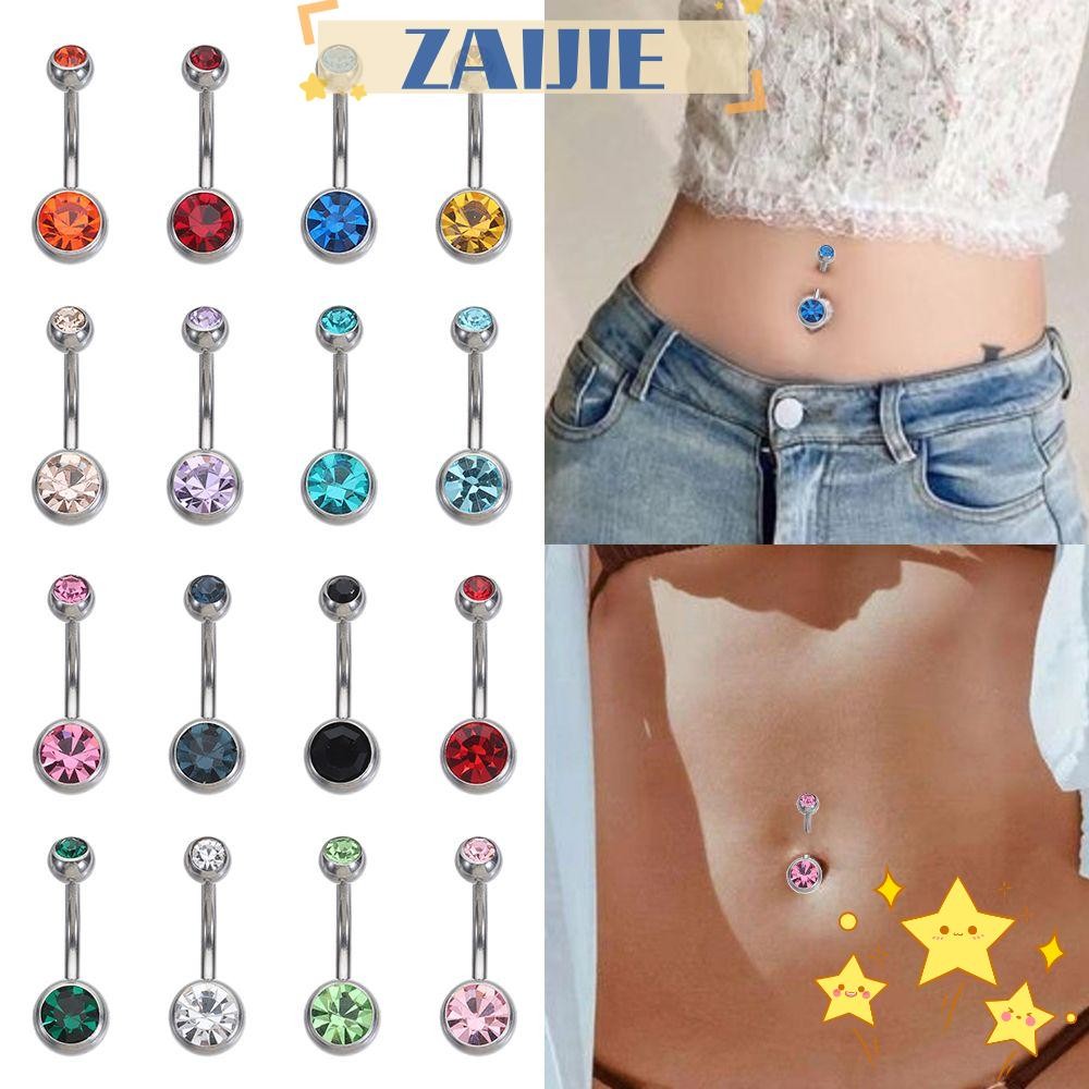 ZAIJIE24 Belly Piercing Fashion Hot Surgical Steel Colorful Double Rhinestone Navel Bar Button Ring Shopee Singapore Very well made.