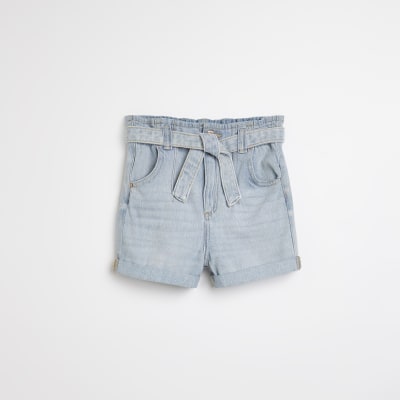 Girls blue paperbag waist belted denim shorts River Island Very well made.